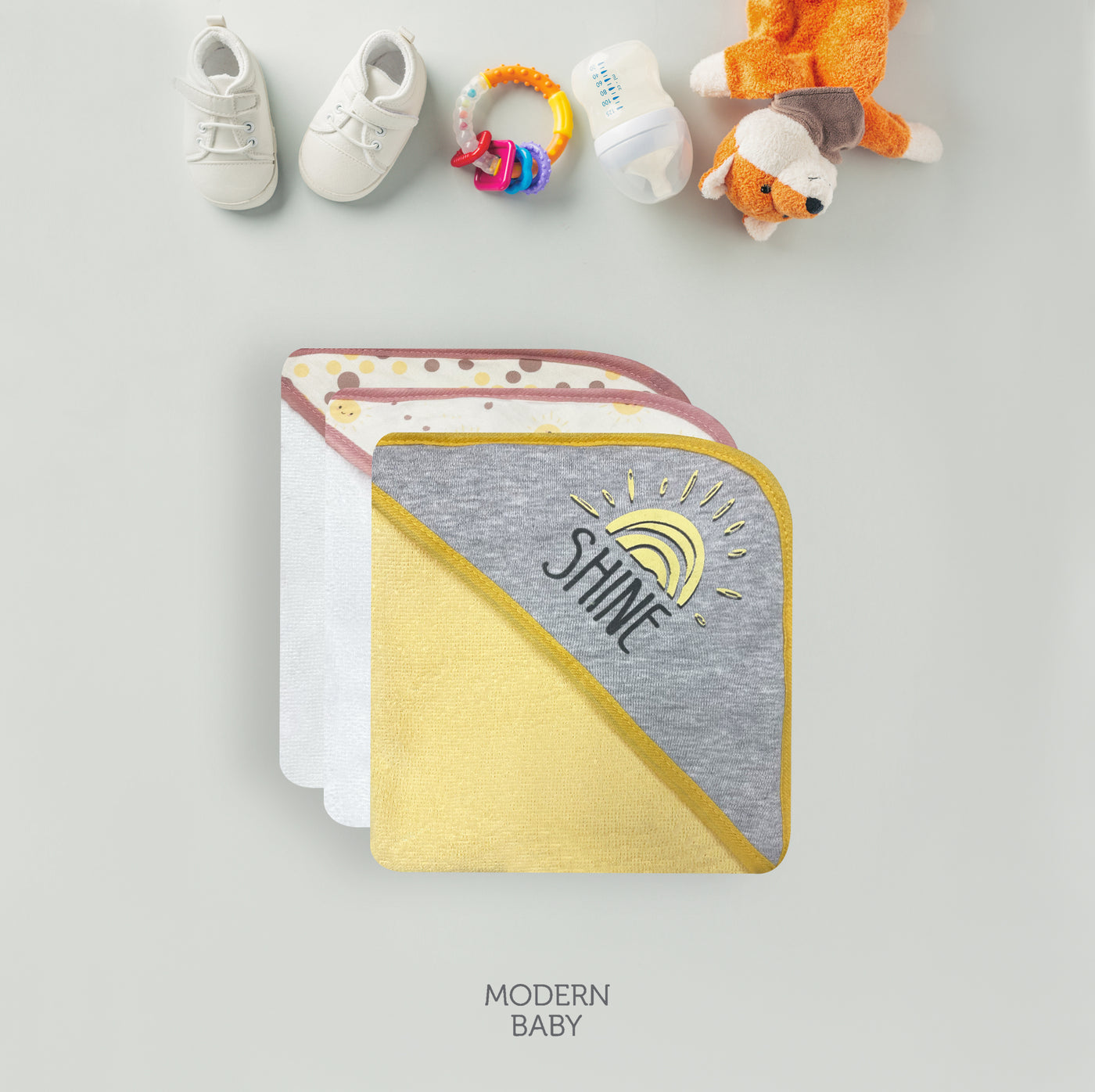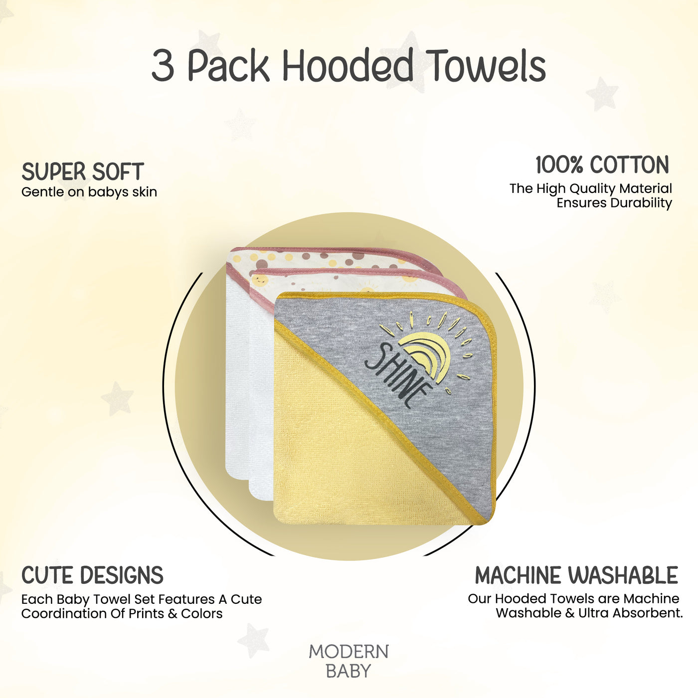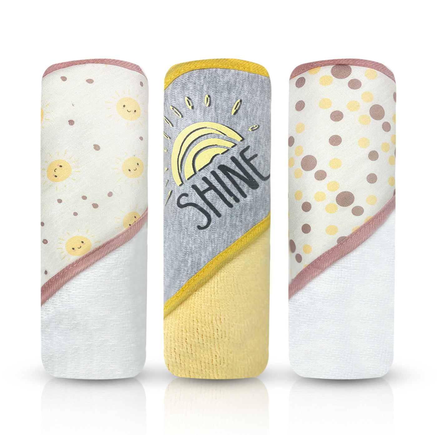 3Pk Hooded Towels W/ 3Pk Wc - Shine