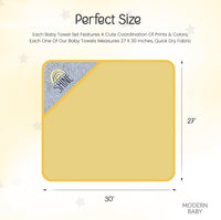 Each Baby Towel Set Features A Cute Coordination Of Prints & Colors, Each One Of Our Baby Towels Measures 27 X 30 Inches, Quick Dry Fabric